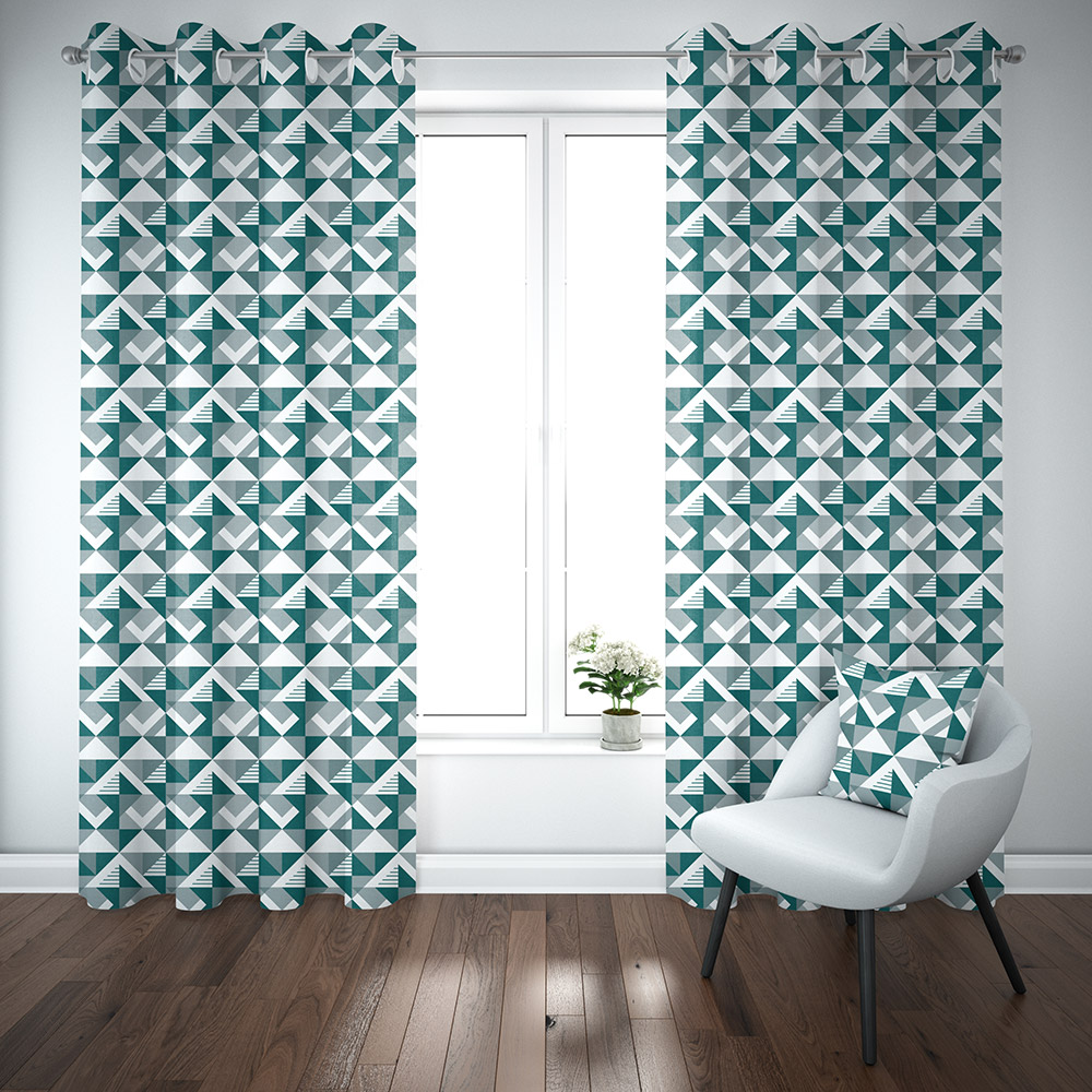 The Dark Teal Geometric Flag Curtains are a bold and versatile fabric for any home interior & inspired by Nautical Flags. It has a lovely geometric feel, this brings a warm feel to any small space, and we offer made to match products including Roller Blinds and Porthole Cushion Liners.