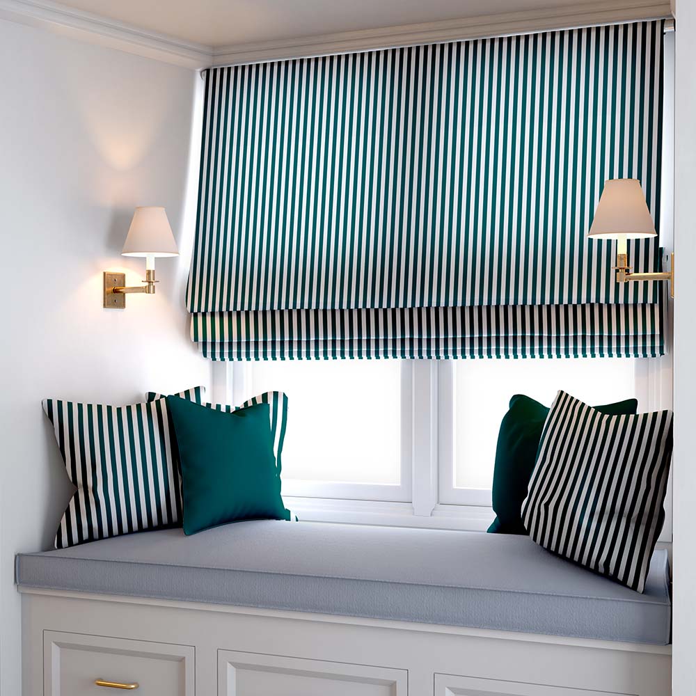 The Dark Teal Stripe Roman Blind is made from a bold and versatile fabric which is easy to add to any home interior to create style. It has a lovely warm feel which brings life to any small space, and we offer made to match products including Roller Blinds, Curtains, Porthole Bungs and Door Bungs.