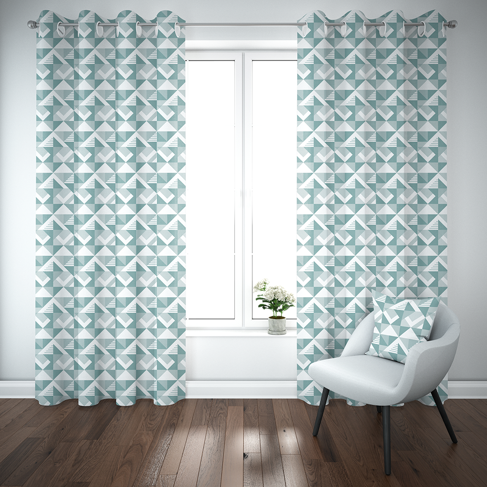 The Duck Egg Geometric Flag Curtains are a bold and versatile fabric for any home interior & inspired by Nautical Flags. It has a lovely geometric feel, this brings a warm feel to any small space, and we offer made to match products including Roller Blinds and Porthole Cushion Liners.