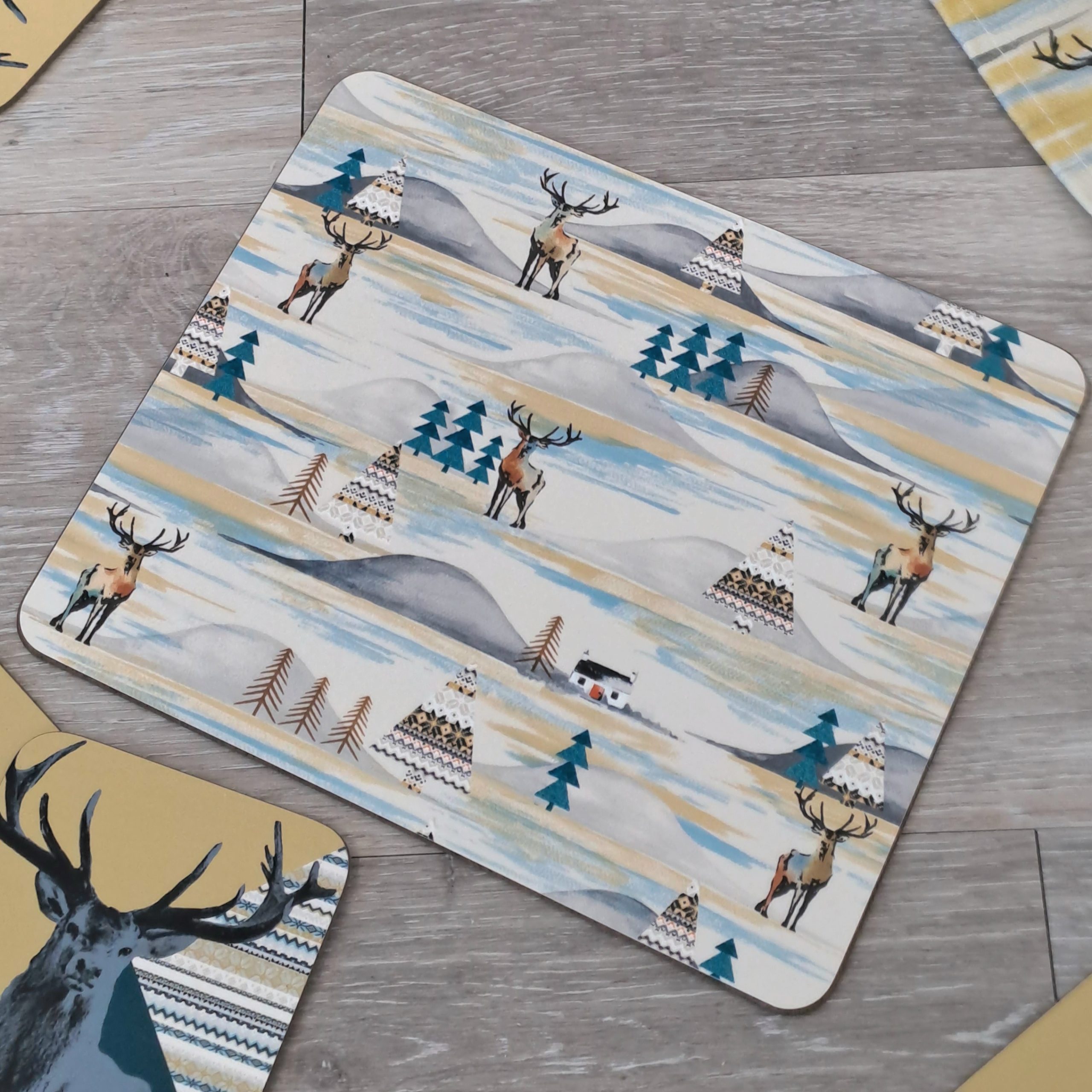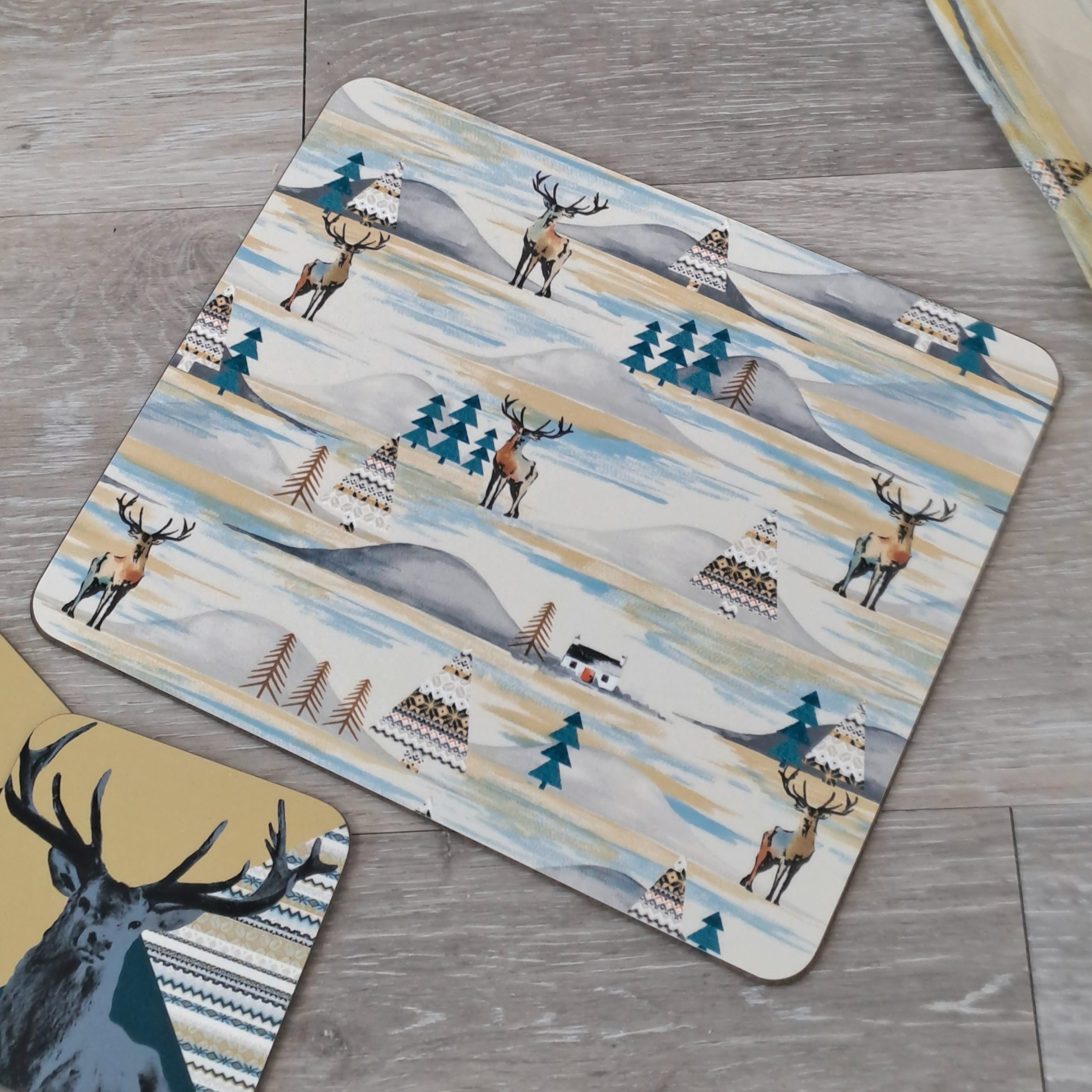 Gorgeous Highland Loch Teal Placemats, that match with Teal Stag Coasters. Vibrant in colour due to the glossy finish, and easy to wipe clean.