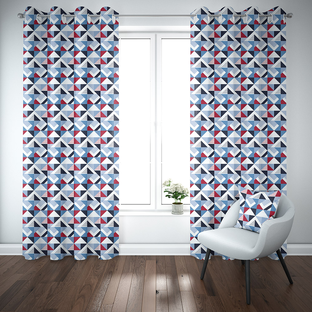 The Nautical Blue Geometric Flag Curtains are a bold and versatile fabric for any home interior & inspired by Nautical Flags. It has a lovely geometric feel, this brings a warm feel to any small space, and we offer made to match products including Roller Blinds and Porthole Cushion Liners.