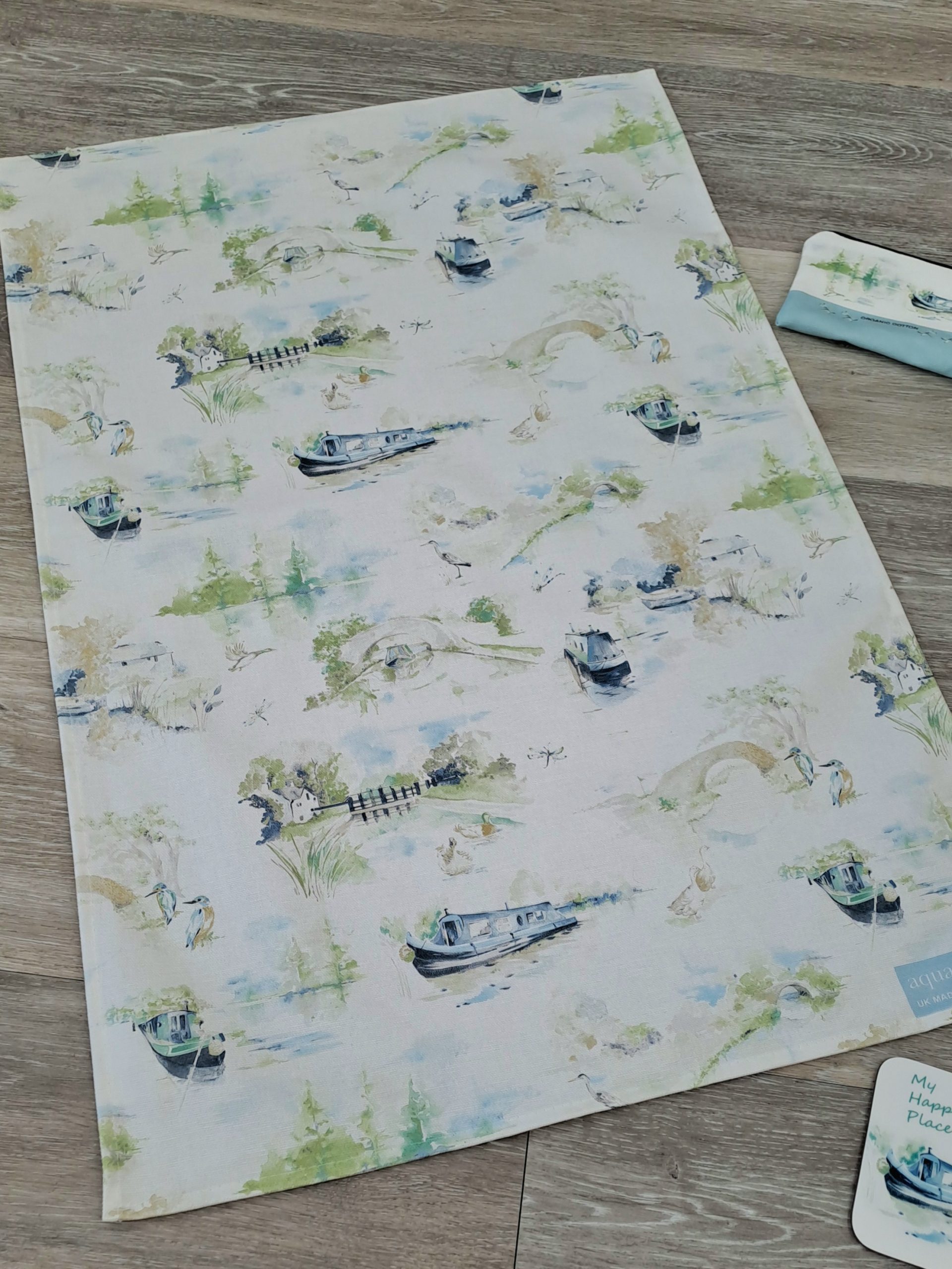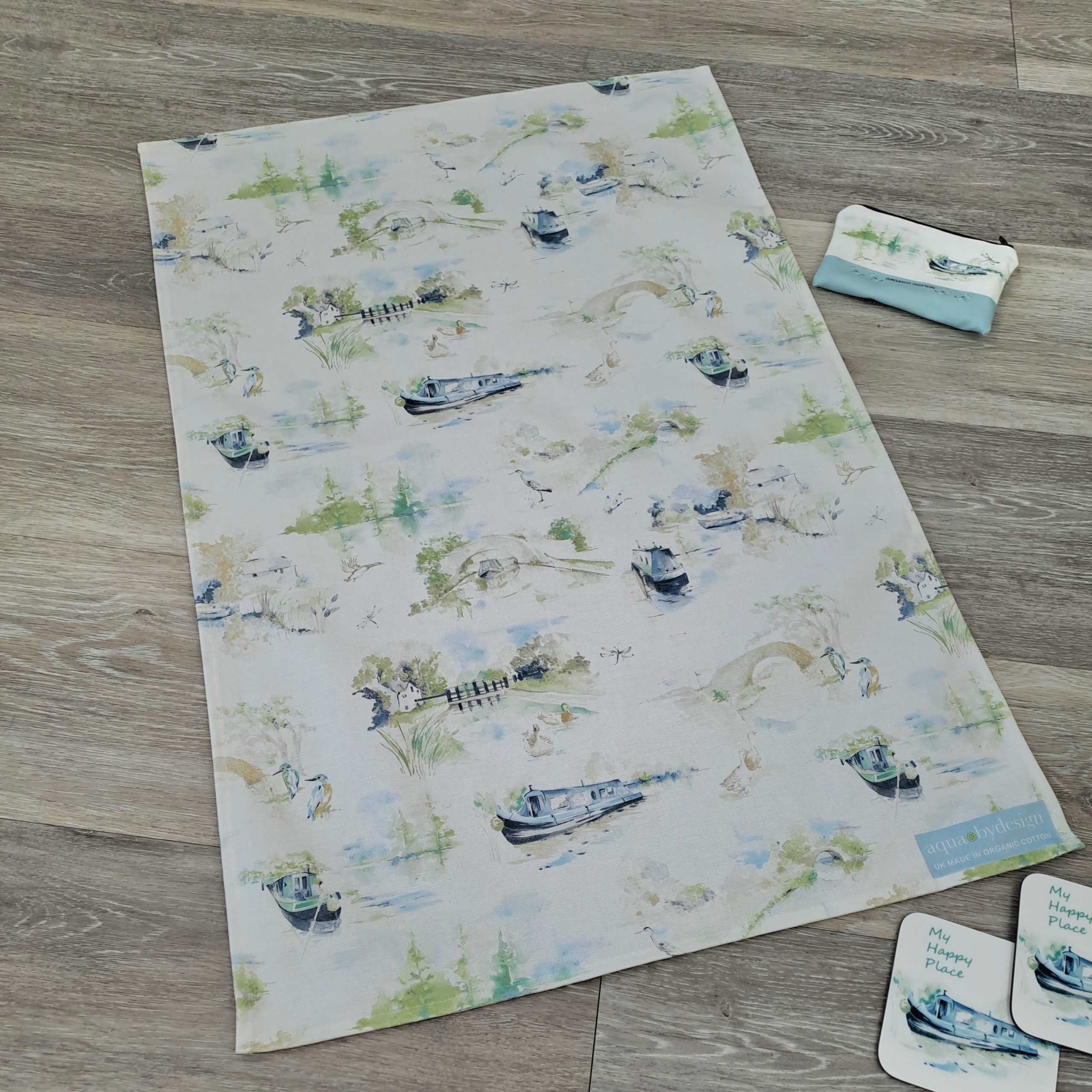 The Summer Canal Scene Tea Towel is designed by our very own Aqua By Design; hand designed in water colours then printed onto Cotton giving art on a Tea Towel